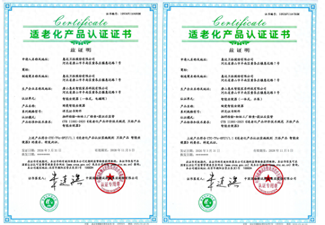 文凭透露,认证居品相宜“适老化居品认阐明施规章卫浴居品智能坐便器、淋浴器”的相关条目。这意味着惠达卫浴适老居品再获国度级专科机构的泰斗背书。