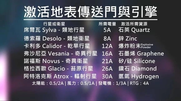 激活传送门需要30A电力、解锁引擎钥匙需要氢气。