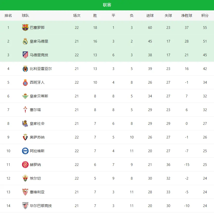 北京手艺2月1日凌晨,西甲第22轮重燃战火,巴萨客场3-1打败埃尔切,亚马尔爆走造2球,豪取各项赛事4连胜;马竞0-0爆冷被莱万特逼平,亿元先生阿尔瓦雷斯又哑火,西蒙尼争冠基本没戏;比利亚雷亚尔2-2战平奥萨苏纳,天然丢分,然而斩获下赛季欧冠席位如故问题不大,这一轮领域后,巴萨络续稳居榜首,马竞和比利亚雷亚尔双双掉队,竟然还能紧咬的,只剩下皇马。