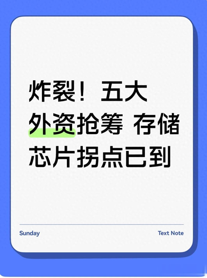 爆点抛出:五大外资抱团抢筹,20亿级存储芯片拐点已至