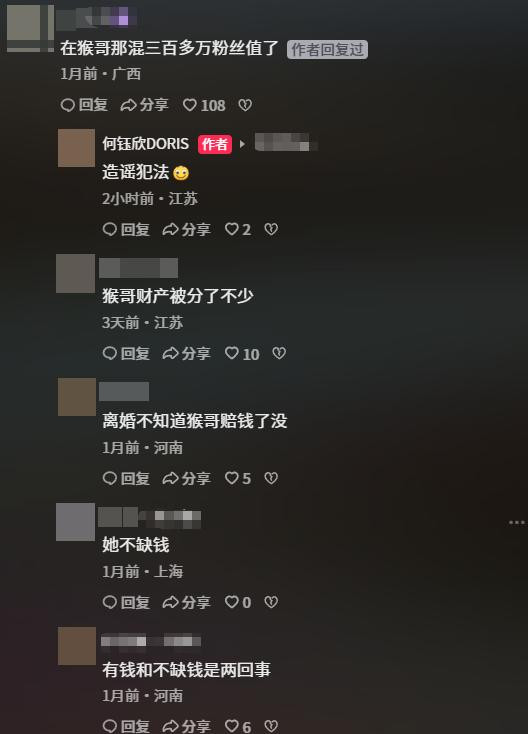 但婚变发生后,何钰欣屡次通过直播、视频控诉猴哥的无情与逃匿,将婚配矛盾公开于网罗,激励网友泛泛参谋。