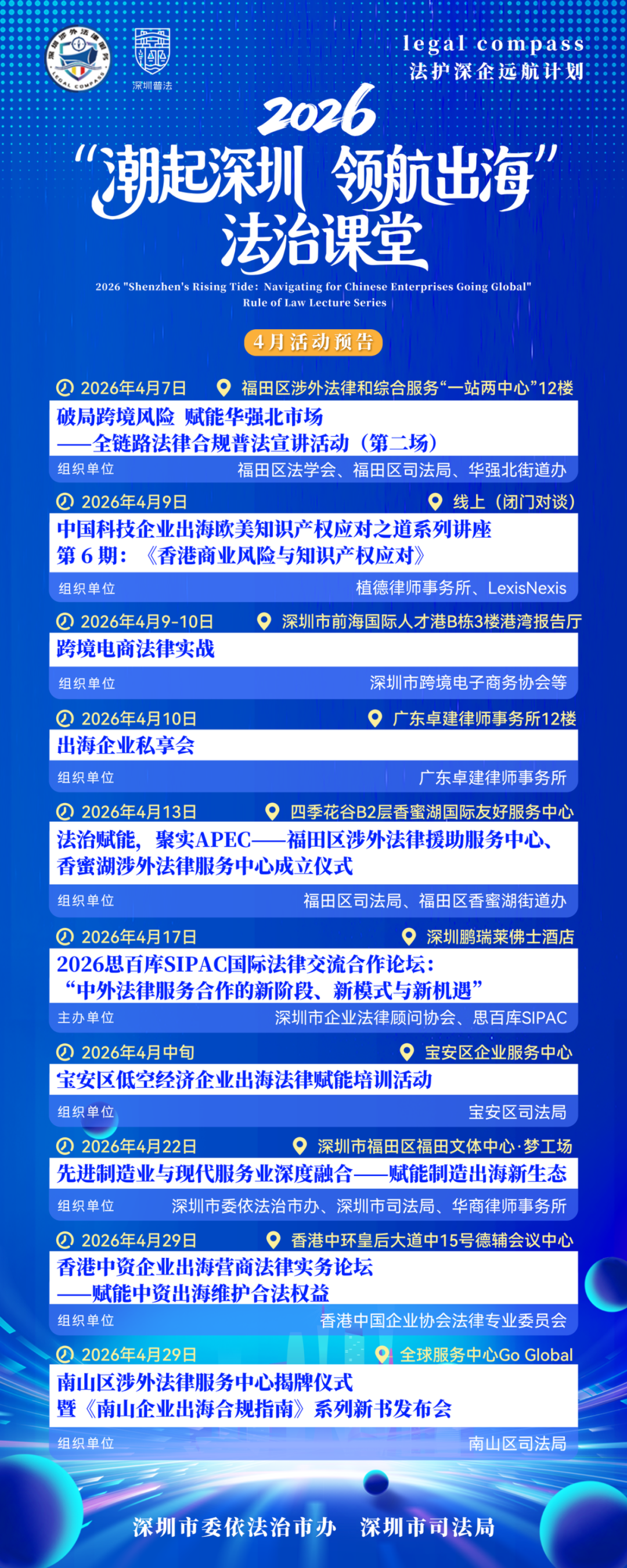 开云体育官方网站 4月举止踏浪而来!Legal Compass法护深企远航策画——2026“潮起深圳·领航出海”法治课堂精彩预报
