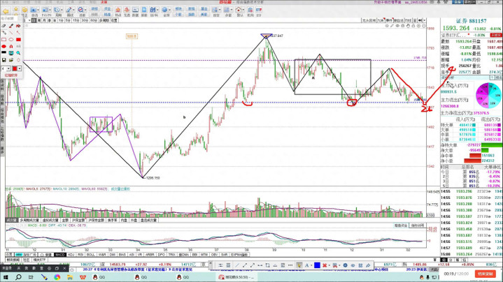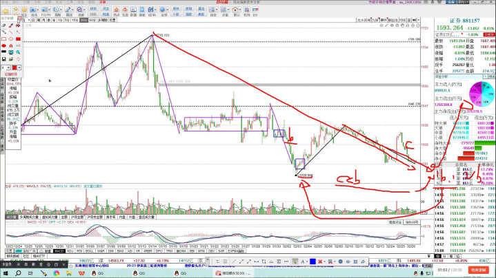 讲下证券,证券仍然是处于回撤经由中,证券的走势跟指数的走势不相通。什么本事证券赓续朝上拉了,可能会带动指数赓续进取。从目下周线结构上来说,这里的着落并弗成证据领域,然则在一千五百八十五点这个位置有扶持,前边扶持过了,取到这个点,目下是二次回踩。