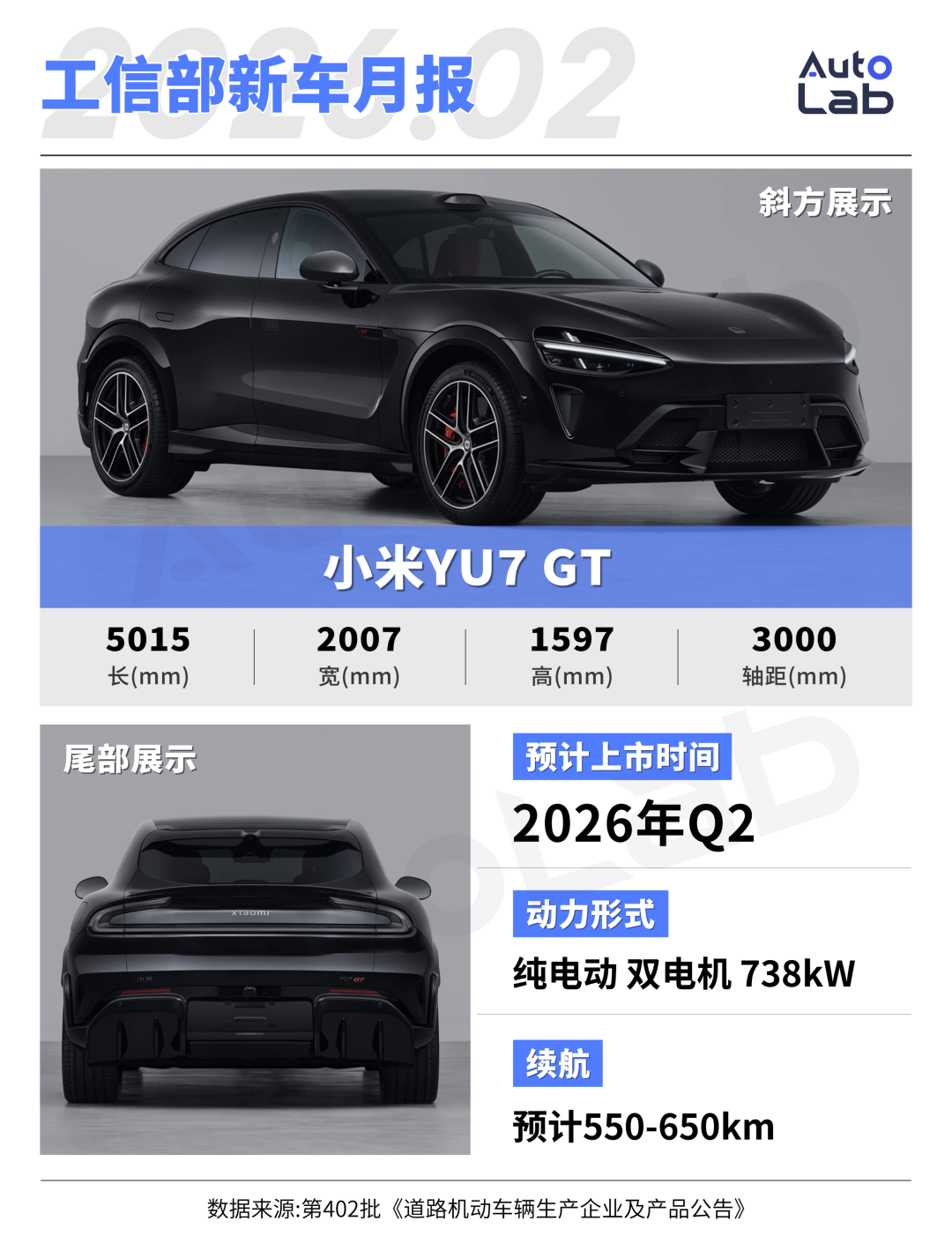 能源方面,比拟SU7 Ultra的三电机,YU7 GT用的则是288kW+450kW的双电机决策,极速300km/h,定位不再那么硬核,八成出手门槛会更低一些。