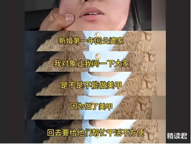 “新婚第一年回公婆家,我对象让我问一下巨匠是不是不行作念好意思甲,因为作念了好意思甲且归干活就不通俗了。”