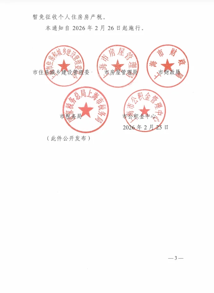 为更好知足住户刚性和改善性住房需求,促进房地产阛阓妥当健康发展,2月25日,市住房城乡建树贬责委、市房屋贬责局、市财政局、市税务局、市公积金贬责中心等五部门皆集印发《对于进一步优化更正本市房地产战略的奉告》(以下简称《奉告》),自2026年2月26日起推行。