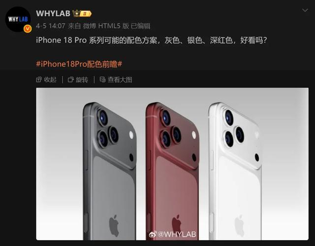 而在近日,博主@WHYLAB径直爆料了iPhone 18 Pro系列的配色有狡计,由原“银色”、此前曝光的“深红色”,以及一款全新的“灰色”构成。